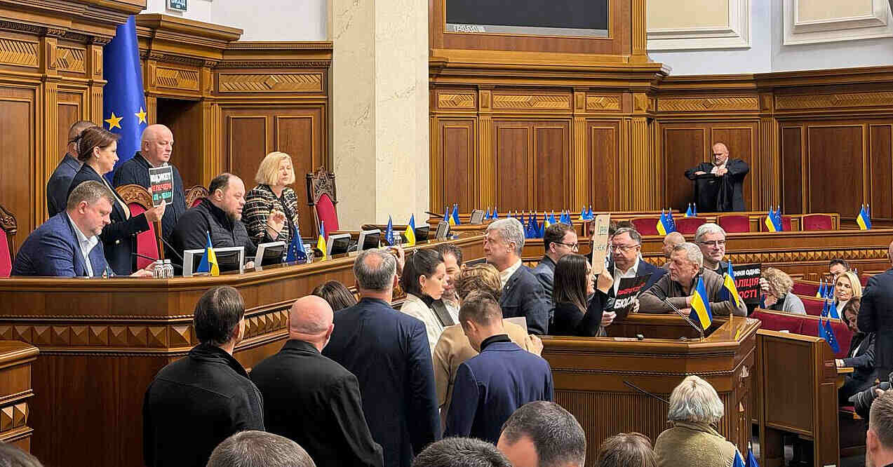 Опозиція сьогодні, 2 грудня, знову заблокувала трибуну у Верховній Раді, вимагаючи відставки Кабміну.Судячи з трансляції, представники партії "Європейська солідарність" знову заблокували трибуну Верховної Ради, вимагаючи відставки уряду. Народні депутати від "ЄС" також скандували: "Уряд – геть".Голова Верховної Ради України Руслан Стефанчук натомість заявив, що парламент сьогодні мав розглянути перелік важливих законів, в тому числі й питання, пов'язані з перекладом конвенції, де треба було забрати російську мову.Після блокування трибуни він оголосив перерву у засіданні, хоча окремі депутати зазначають, що на цьому сьогоднішнє засідання буде завершене.Що передувалоНагадаємо, за останні два тижні опозиція вже не вперше блокує трибуну, чим зупиняє засідання ВР. Так, 18 листопада у Верховній Раді зірвалося засідання, на якому мали розглянути відставку міністра енергетики Світлани Гринчук та міністра юстиції Германа Галущенка.Роботу парламенту зупинили після того, як низка народних депутатів заблокувала трибуну з вимогою ухвалити "реальні кадрові рішення".Тоді фракція "Європейська солідарність" заявила, що не голосуватиме за звільнення Галущенка та Гринчук доти, доки на порядок денний не винесуть питання відставки всього уряду.Також 19 листопада народні депутати від "Європейської солідарності" знову заблокували трибуну перед голосуванням за відставку міністра енергетики Світлани Гринчук та міністра юстиції Германа Галущенка.Вони наполягали на звіті прем’єра Юлії Свириденко та міністрів Германа Галущенка і Світлани Гринчук перед розглядом їхньої відставки.