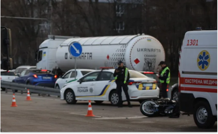 За попередніми даними, водій вантажівки Mercedes здійснював розворот, коли в задню частину транспортного засобу врізався мотоцикліст, який рухався у напрямку центру міста.